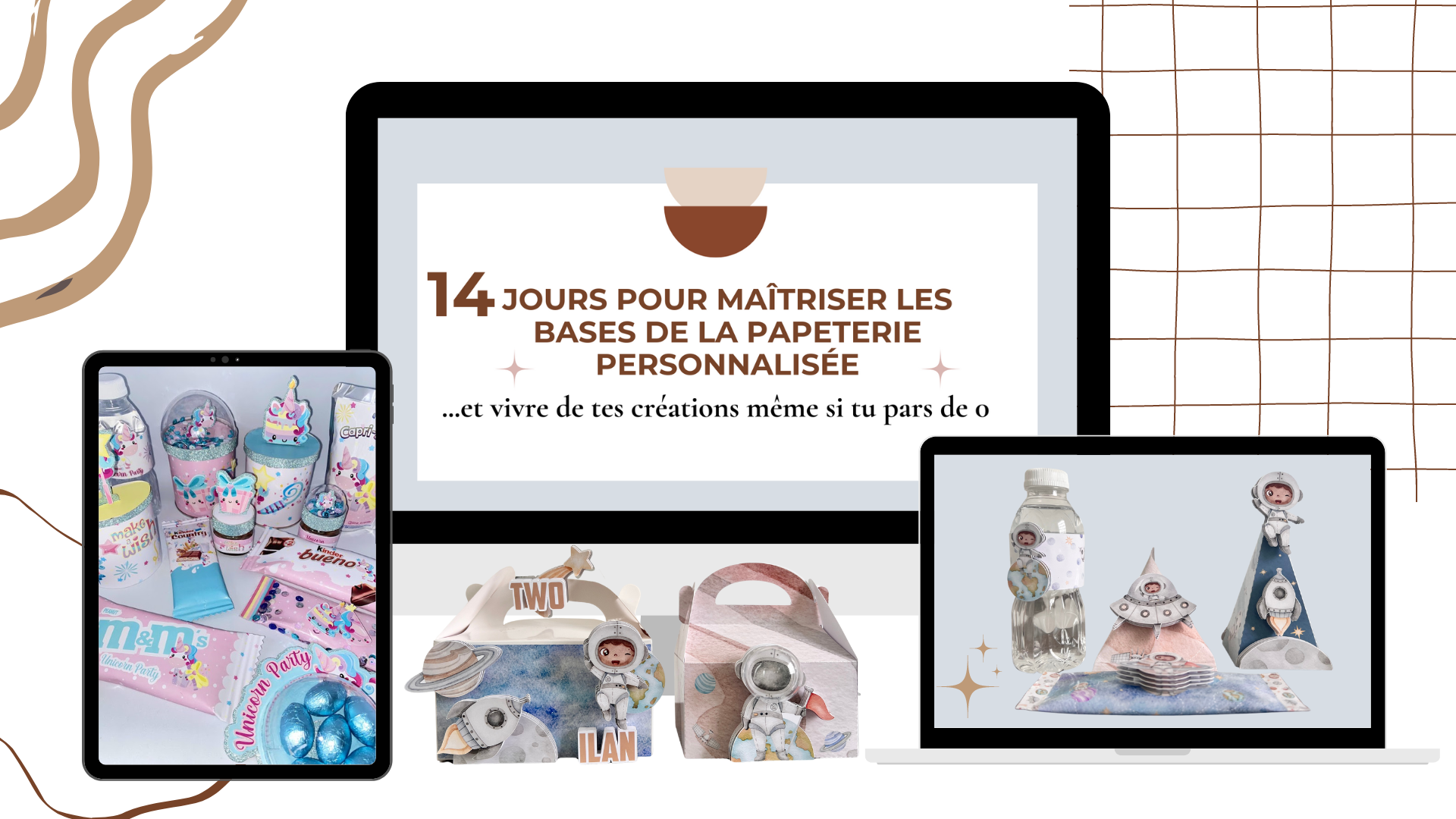 Devenir une professionnelle de la papeterie personnalisée, être reconnue pour la qualité de tes créations et générer des revenus grâce à ta passion et ta créativité